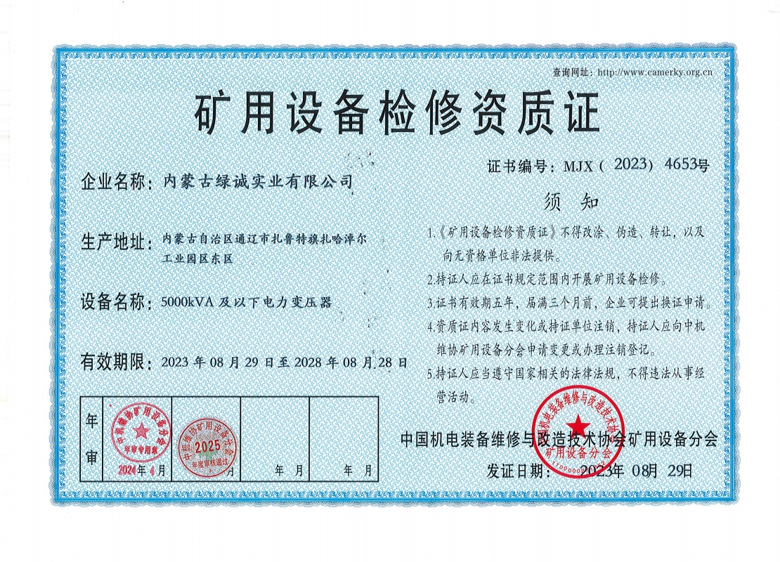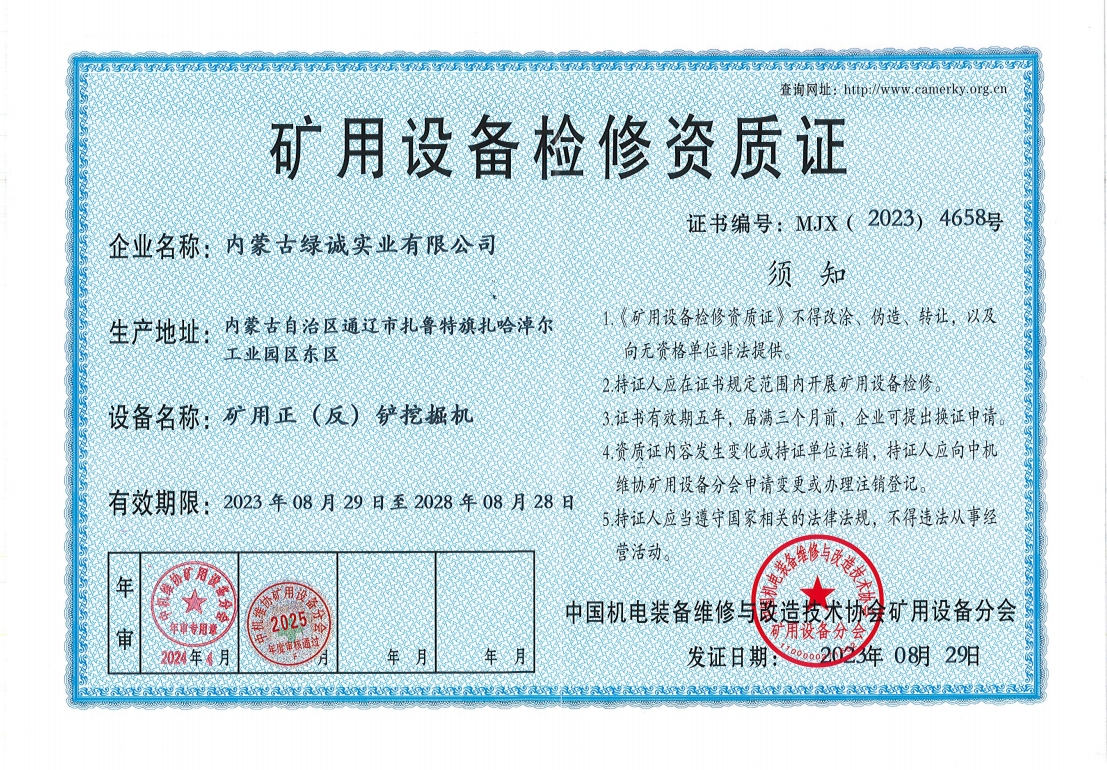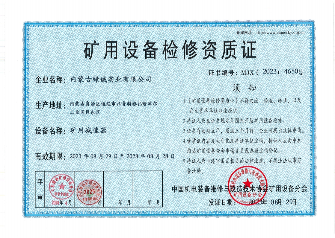 2018年我公司通過(guò)中國(guó)機(jī)電裝備維修與改造技術(shù)協(xié)會(huì)礦用設(shè)備分會(huì)審核并取得了9項(xiàng)礦用設(shè)備檢修資質(zhì)證書。公司本著“誠(chéng)信為本 質(zhì)量為先 全心全意為客戶 ”的服務(wù)理念,圓滿完成各個(gè)廠礦的機(jī)械維修及配套服務(wù),期待與您共同合作。